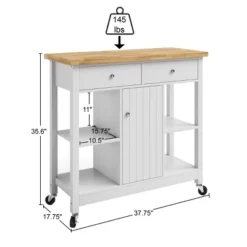 - 【Solid & Sturdy Kitchen Cart】Premium MDF material and rubber wood tabletop add a durable and eco-friendly advantage to this kitchen cart to last for long years with a longer lifespan. A special paint surface also makes it sturdier to firmly hold the items with a high capacity of 150 lbs for the main top.