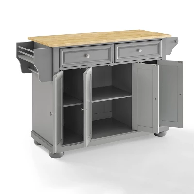 Constructed of solid hardwood and wood veneers, this kitchen island is designed for longevity. The beautiful raised panel doors and drawer fronts provide the ultimate in style to dress up your kitchen. Two deep drawers are great for anything from utensils to storage containers. Behind the four doors, you will find adjustable shelves and an abundance of storage space for things that you prefer to be out of sight. Style, function, and quality make this kitchen island a wise addition to your home. Â