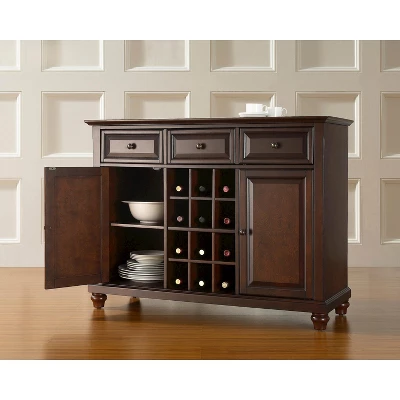 Beautifully crafted, the Cambridge Sideboard with Wine Storage offers long-lasting storage and counter space. The transitional silhouette of the sideboard is elevated by the classic turned feet and decorative raised panels. With three large drawers and two cabinets with adjustable shelves, this sideboard can hide away a multitude of kitchen items. Featured at the center of the sideboard are 12 perfectly sized wine cubbies that can be removed to create open storage with an adjustable shelf. Adaptable and stylish, the Cambridge Sideboard with Wine Storage is a perfect centerpiece for your kitchen. 47.75”W X 18”D X 36”H