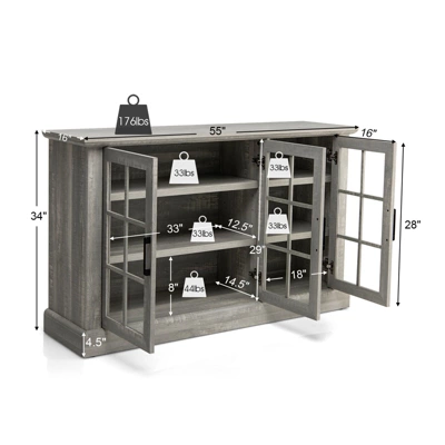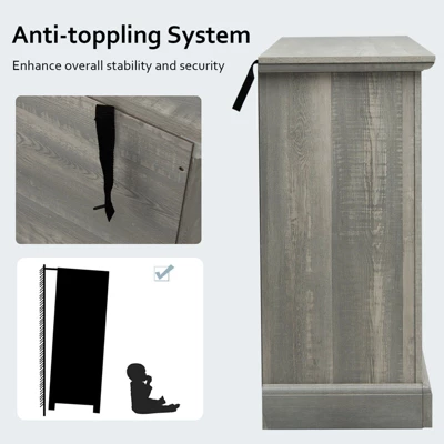- Anti-toppling System & Stable Structure: To enhance overall stability and security, the sideboard is equipped with anti-toppling device. Stable base makes it not easy to wobble or collapse. Additionally, the sideboard also features a high load bearing capacity up to 352 lbs, so as to hold different kinds items with great firmness.