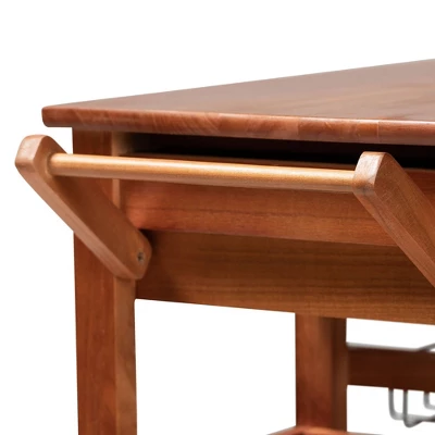 Expand the potential of your kitchen with the remarkable design of the Crayton kitchen cart. Made in China, this versatile piece is crafted from sturdy wood and adorned with metal embellishments. Three drawers offer space to organize kitchen utensils, while three wire racks provide a convenient display for fresh produce or supplies. Requiring assembly, the Crayton features two built-in wine racks capable of holding six bottles to organize your collection. Caster wheels enable mobility, making the Crayton kitchen cart a versatile addition to any dining space. Overall Dimensions: 31.50″ High x 23.60″ Wide x 14.60″ Deep; Drawer Dimension Left/Right: 3.94″ High x 9.76″ Wide x 13″ Deep; Lower Drawer Dimension: 5.51″ High x 9.76″ Wide x 13″Deep; Top Sliding Tray: 3.94″ High x 9.76″ Wide x 13″ Deep; Midder/Bottom Sliding Tray: 5.83″ High x 9.76″ Wide x 13″ Deep; Wine Rack Top/Bottom: 5.71″ High x 9.84″ Wide x 13″ Deep