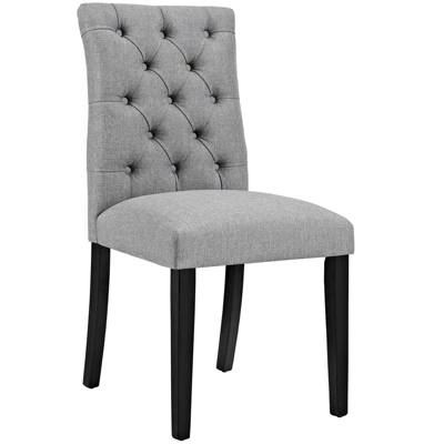 Bestow elegance with the Duchess Dining Chair. Chic and luxurious, Duchess features a stylish curvy form, richly tufted button back, dense foam padding, fine fabric upholstery, and wood legs topped with non-marking foot caps. Duchess is the perfect choice for hosting elegant dinners. Also popular in living rooms as an accent chair. Resonate grace and charm with a dining chair perfect for the modern home.