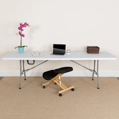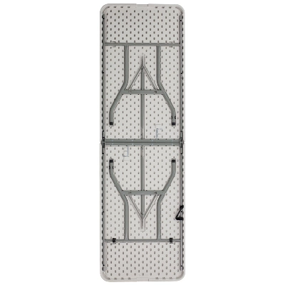 If you attend trade shows and have catalogs and products to display this portable folding table with carrying handle will make your life a little easier. Have your table standout at expos by draping a floor length table cover over the table and offering sweets to engage people as they walk by. After events the legs lock into place underneath the top and folds in half to transport with less effort. Be unbothered when your relatives invite additional friends to the barbecue, you’ll have plenty of space on this 8′ long centerfold table. This event folding table accommodates up to 10 adults to throw big birthday parties and host baby showers. This ready to use table is commercial grade and is often used in restaurants, warehouses, schools, churches and recreation centers. Event rental venues keep rectangle folding tables on the premises as they are the most used to accommodate parties of all sizes. Rectangular tables can be arranged to create a u-shape to allow space for a dance floor. Easy to clean and store, plastic folding tables are the best and most popular option for any occasion. Although designed for indoor events this party table can be used outdoors on the deck or patio during good weather. Store the table indoors and protect the frame from extreme moisture. Invite everyone to the celebration when you have this 30×96 plastic folding table readily available at your home or business. Additional Features: Folds in half for storage and travel, Includes convenient carrying handle, Gray Powder Coated Locking Legs with protective floor caps
