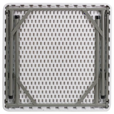 Folding tables are so multi-functional you’ll wonder how you lived without them. This set of 5 34″ square folding tables is beneficial in a multitude of settings that include banquet halls, conference centers, cafeterias, schools and in the home. These tables can be used as a temporary seating solution for murder mystery dinners, sip and paint parties or be setup for everyday use like making play clay, cookies, or folding laundry. The durable blow molded top is low maintenance and cleans easily. The table legs fold under the table to make storage more convenient and for better portability. This table is commercial grade to withstand everyday use in the hospitality industry. When using for outdoor events store indoors to protect the frame from extreme moisture.