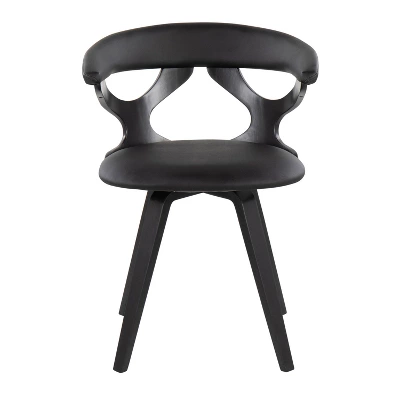 The unique cut-out design that forms the back of the LumiSource Gardenia adds visual flair to the design of this great chair, while the swivel seat provides maximum comfort and convenience. The tree-like look of the curved back is accented with padded upholstery, providing superior comfort while bent wood legs give ample stability. Available in various finishes and upholstery colors, the Gardenia Chair will definitely make a statement.