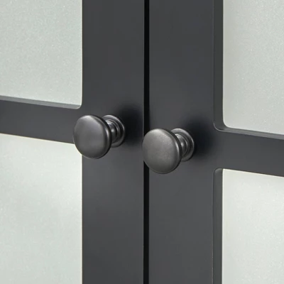 Enhance your dining area with the attractive Hampshire Buffet from Buylateral. Four stunning tempered glass frame doors are finished in black, providing a striking contrast to the white finished cabinet. Two adjustable shelves allow for storing various sized items in your dining area or living space, including dinnerware, serving pieces, linens or books, games, and more.