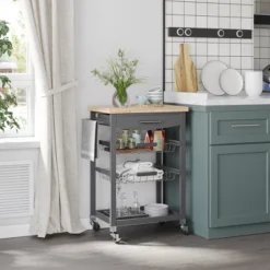 Quickly add that needed storage and get kitchen supplies clutter-free with this HOMCOM kitchen buffet cabinet. Framed tempered glass makes this sideboard buffet stylish and keeps the item without dust. The sideboard with two storage cabinets and a tabletop provides a versatile storage solution. Customize your home space with the interior adjustable shelves that move to fit your needs. This HOMCOM buffet sideboard will create a classic feel and grace your house.
