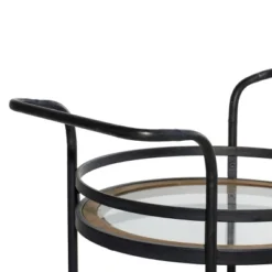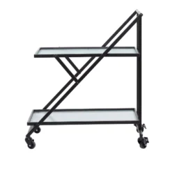 Get organizing in a delicate and fashionable style with this tiered storage cart placed in any of your home spaces. Keep your space a clutter free zone with this conveniently designed storage cart. A sturdy structure with smooth caster wheels for optimal mobility. This item comes shipped in one carton. A metal frame with wheels holds the wooden bins as shelves. Suitable for indoor use only. Industrial design. Maximum weight limit is 30 lbs.
