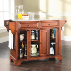LaFayette Solid Black Granite Top Portable Kitchen Island Wood/Classic Cherry Finish – Crosley