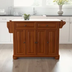 Alexandria Stone Top Full Size Kitchen Island/Cart Cherry/White – Crosley