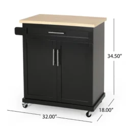 Byway Contemporary Kitchen Cart With Wheels Black/Natural – Christopher Knight Home