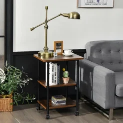 Costway 3-Tier Rolling Adjustable Printer Cart Machine Stand Storage Rack Brown