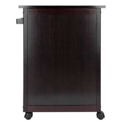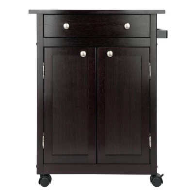 There’s no reason you can’t have the space you want with the Winsome Savannah Kitchen Cart. This kitchen island cart gives you more space in your kitchen, quite probably your most valuable room square footage wise. This smart cart has a counter top that gives you vital workspace. The drawer keeps all of your measuring tools handy. And a generous cupboard holds all kinds of extras. There’s even a towel bar for added convenience. The caster wheels let you move your kitchen cart to different positions with ease, and by simply locking the wheels you ensure there won’t be unwanted movement.