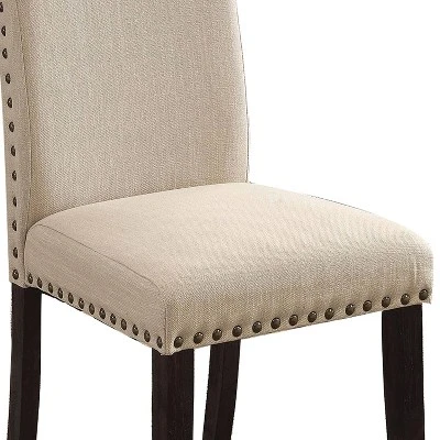 Make Your Dining Room A Stylish Force To Be Reckoned With When You Add This Contemporary Side Chair. A Nailhead Trim Traces The Edges Of The Light Fabric Chairs, Guiding Eyes Down To The Contrasting Leg Finish. It is made up of Wood and linen, the color of the product is Black.