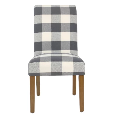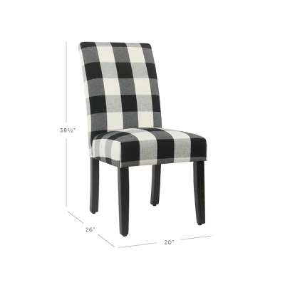 The HomePop Parsons Dining Chair in plaid fabric is a modern masculine take on a classic parsons frame. Make a strong statement with this bold buffalo plaid fabric woven in 100 percent cotton and combined with wood legs. With strapped seating construction for increased comfort, this dining chair can easily move out of the dining room into the living room, bedroom or entryway to provide extra seating and style as an accent chair. Easy to assemble and maintain with spot cleaning as needed. Sold as a pair.