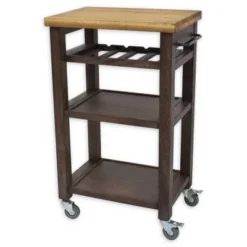 The Sherlock Server Cart from Steve Silver Co. is great for entertaining. The top is perfect for serving food and drink, and it features a stemware holder on the underside for wine glasses and champagne flutes. The middle tier features a wine rack that can hold four bottles and a small shelf, and a bottom shelf rounds out the cart with extra storage space.