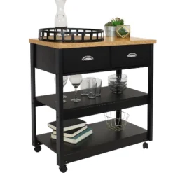 Sunderland Coastal And Farmhouse Natural Wood Kitchen Cart Gray, Light Brown – Baxton Studio