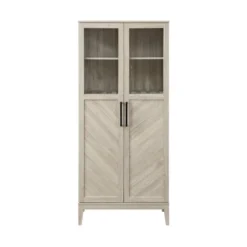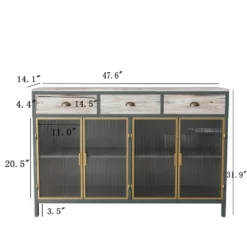 47.6″ Modern Freestanding 4 Glass Door Sideboard With 3 Top Drawers, Natural – ModernLuxe