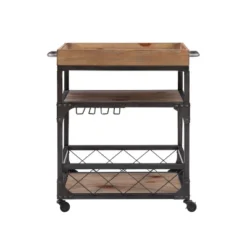 - •This indoor bar cart highlights circular frame and shelves as well as round caster wheels