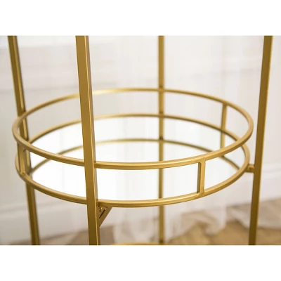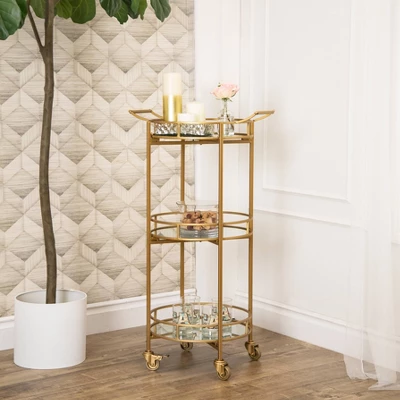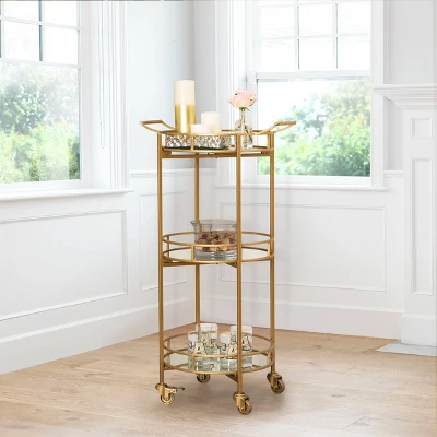 The Zamora 3 Tier Bar Cart by Abbyson is the ideal solution for storing and displaying your bottles and glasses in style. Glamorous yet sturdy, this metal and glass 3-tier bar cart includes 4 locking wheels and 2 handles for easy movement. This piece is the perfect addition to your dining room, living room, den, or wherever the party may roam in your home.